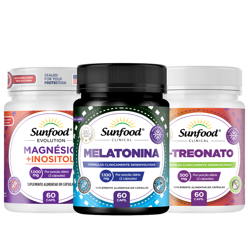 Dormir bem é fundamental para a saúde. Quando o sono não é de qualidade, o corpo não se recupera, o sistema imunológico enfraquece e o humor é afetado. Este kit reúne suplementos que trabalham em conjunto para: