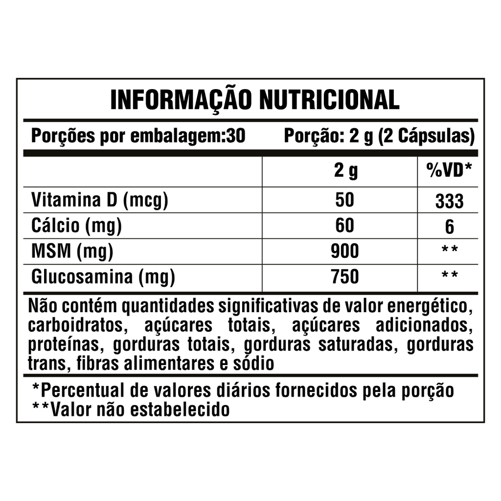 ** Valores diários de referência com base em uma dieta de 2.000 Kcal ou 8.400 KJ. Seus valores diários podem ser maiores ou menores de acordo com suas necessidades energéticas.