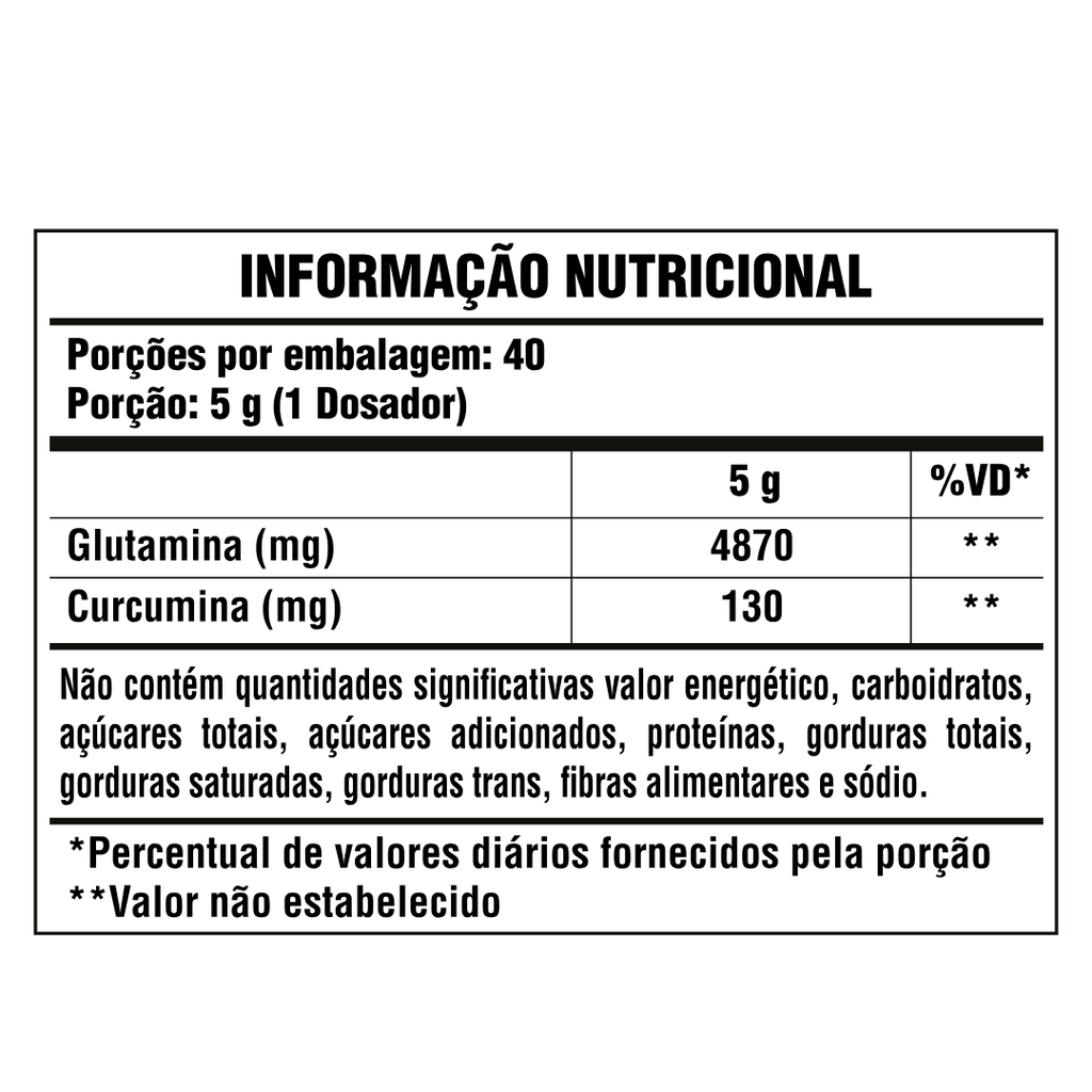 Auxilia na saúde intestinal, fortalece a imunidade e ajuda na recuperação do organismo. A glutamina protege a mucosa do intestino e melhora a absorção de nutrientes, enquanto a cúrcuma contribui com ação anti-inflamatória e antioxidante, promovendo mais equilíbrio e bem-estar no dia a dia.
